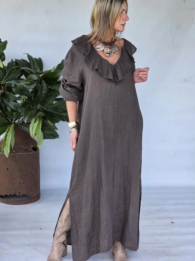 100% lino - bordado a mano en terminación del cuello.